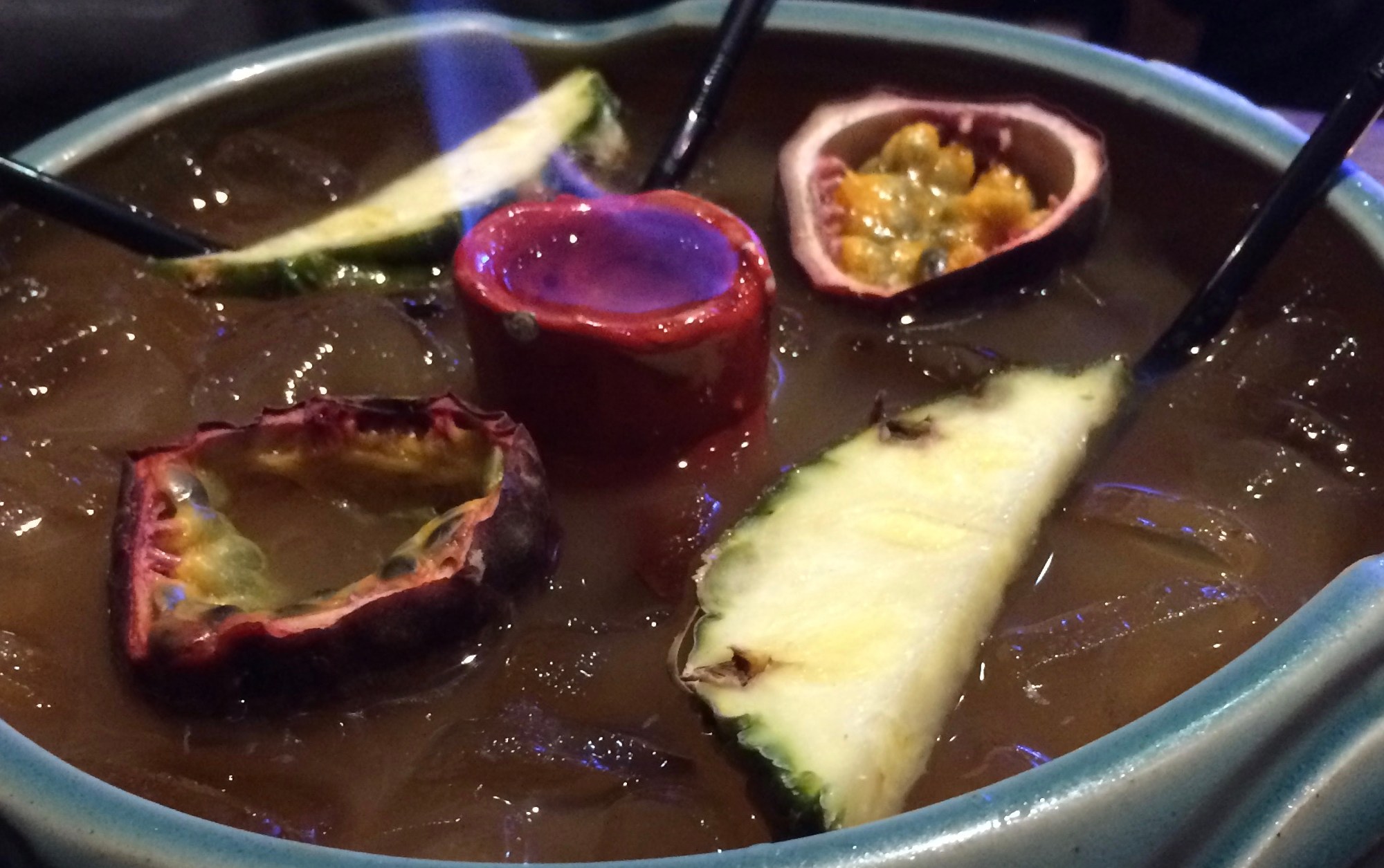 I adore the cocktails here and I have probably had one of each of them at one point or another. Worth a special mention and featured here in two of the photos is the Pacific Rim Job. I have had many of these. The first thing to mention about the Tiki that they make proper cocktails. No watered down stuff here so they are lethal. The rim job is particularly lethal and I have to admit it’s not their tastiest but it is brilliant for the novelty and theatre of it as a fishbowl to share with friends and also the fact it gets set on fire! Its £20 but contains 5 or 6 shots on my count depending on whether they use alcoholic or non-alcoholic falernum. It’s great fun! They also do all the classic Pacific island cocktails, many with a bit more of a kick than usual. Their zombie being only two per person speaks for itself!