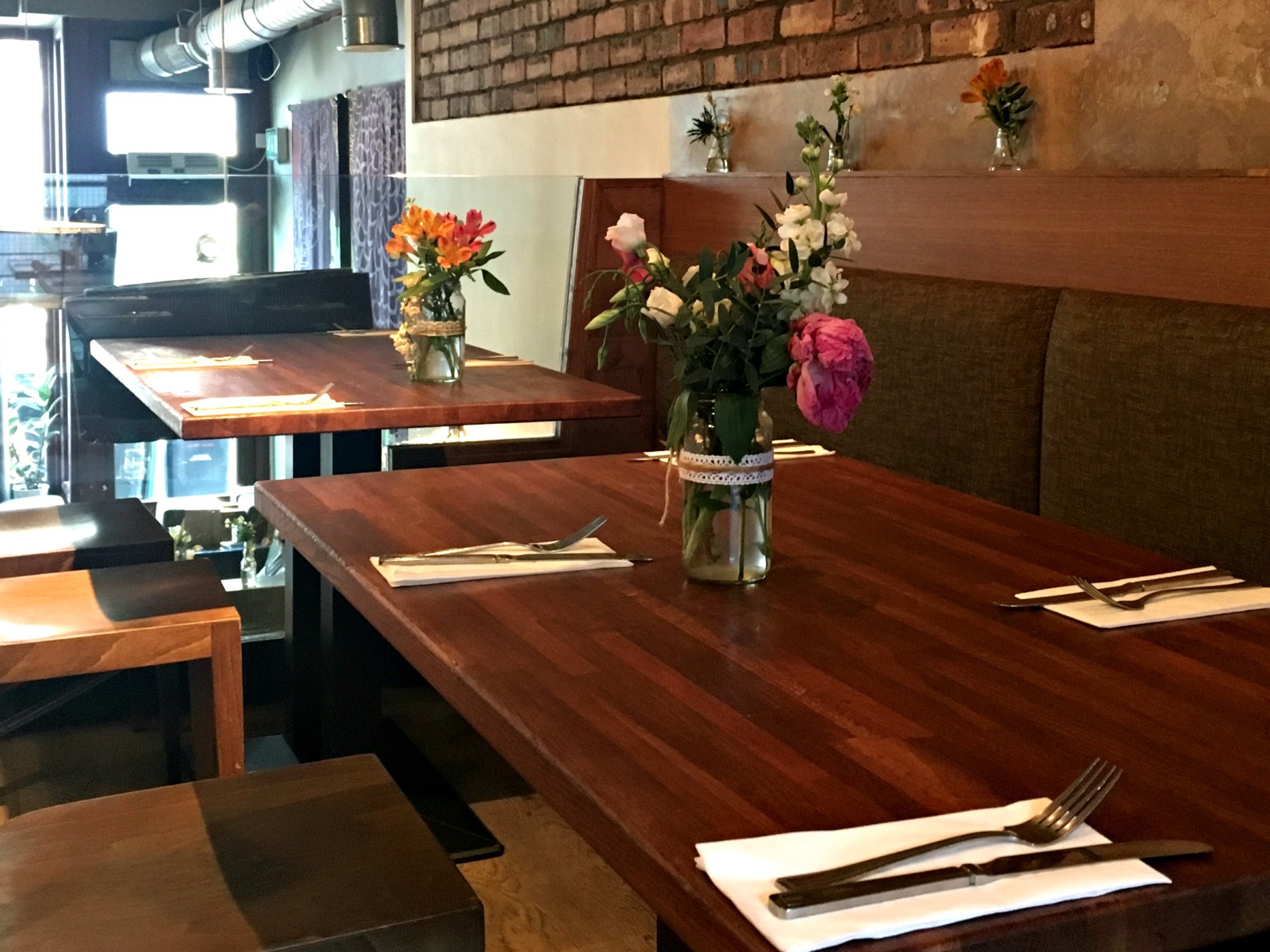 As it was another rushed affair there was only time for mains, we were sat upstairs and we were in a secluded corner alone. The freshly cut flowers on the tables adding a little feminine touch to the otherwise modern loft style decor.