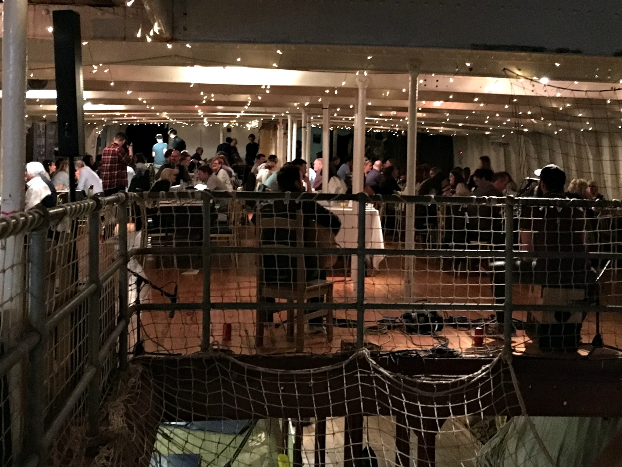 We arrived bang on time and immediately went to the bow of the ship for a photo before heading downstairs for dinner. The place looked amazing. Much more atmospheric than when I had been below deck there during normal visiting hours. I knew we were going to have a great evening just because of the venue. It was quirky and interesting and cool. On top of that we were all eating our dinner on the slant of the deck which was most obvious when looking at your drink in the glass.